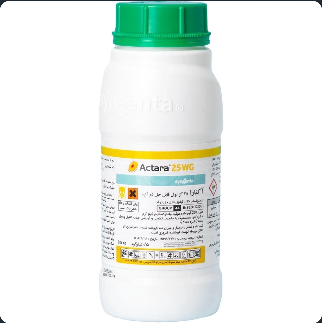 حشره کش آکتارا سینجنتا، حشره کش سیستمیک با خاصیت تماسی و گوارشی و حاوی 250 گرم ماده موثره تیامتوکسام در کیلوگرم است. حشره کش آکتارا سینجنتا دارای اثرات سوء روی دشمنان طبیعی میباشد. از این رو باید از سمپاشی درختان در مرحله گلدهی خودداری نمود. کاربرد این حشره کش فقط یک نوبت در سال به طور منطقی و در تناوب با سایر سموم با اثرات جانبی کمتر در زمان ایجاد کمترین تلفات روی دشمنان طبیعی توصیه میشود. سمپاشی باید زمانی صورت گیرد که احتمال تلفات دشمنان طبیعی در مرحله مقاوم کمتر است.
