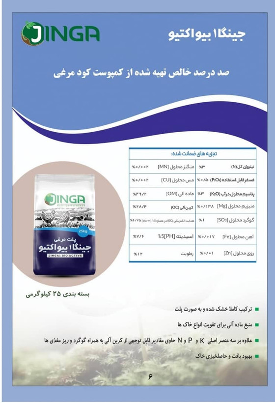 کود پلت مرغی جینگا مدل بیو اکتیو